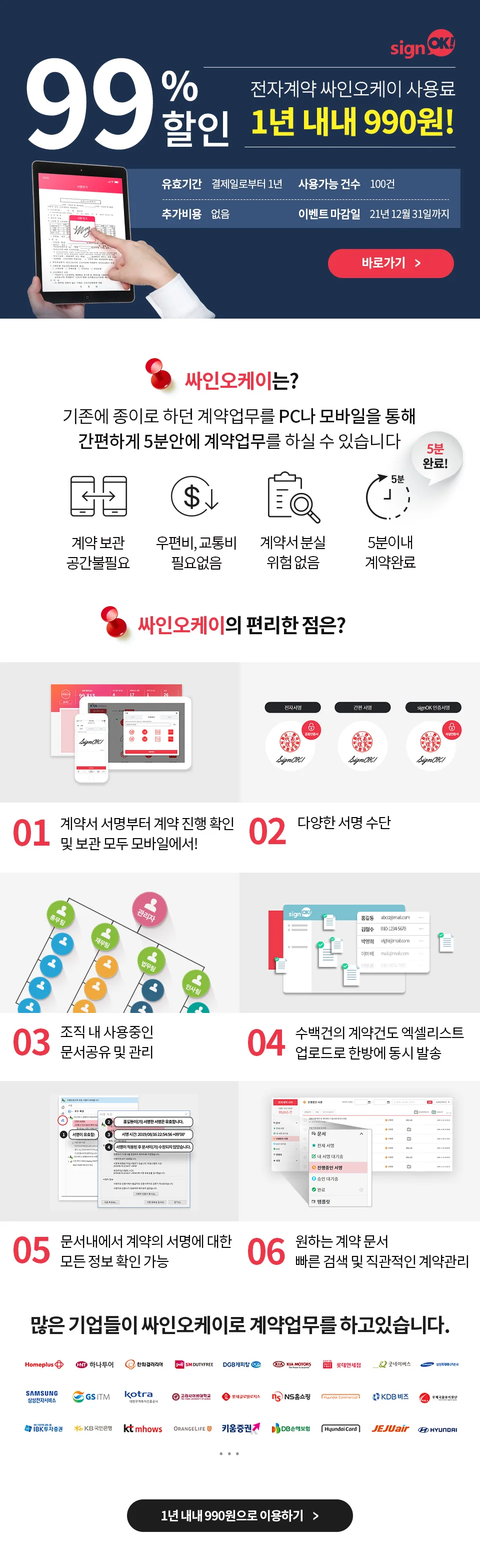 안녕하세요 다우오피스입니다😀 기업이 필요로 하는 다양한 서비스를 혜택과 함께 무료로 가입하고 사용할 수 있는 다우오피스 Link+에서 이벤트를 진행하고 있습니다! 비대면 전자계약 서비스 싸인오케이를 다우오피스 Link+와 연동해서 사용하는 고객을 대상으로 전자계약 서비스를 1년동안 사용할 수 있는 기회를 99% 할인된 가격인 990원에 제공하고 있다는 소식! 오직, 다우오피스 Link+를 사용하시는 고객분들에게만 제공되는 기회를 놓치지마세요!