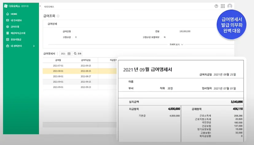 [다우오피스 - 급여명세서]