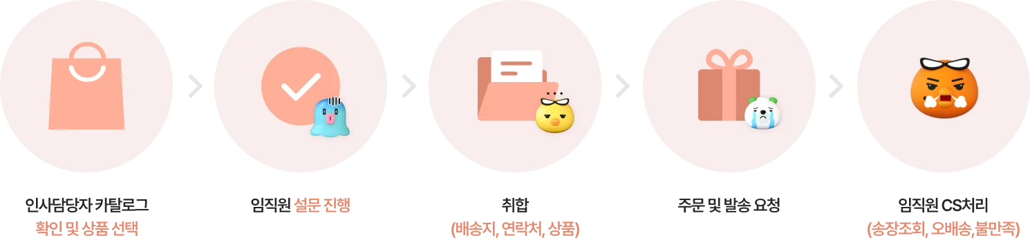 임직원 스스로 상품을 선택하고, 배송지를 입력하며, 배송 상황을 조회할 수 있어