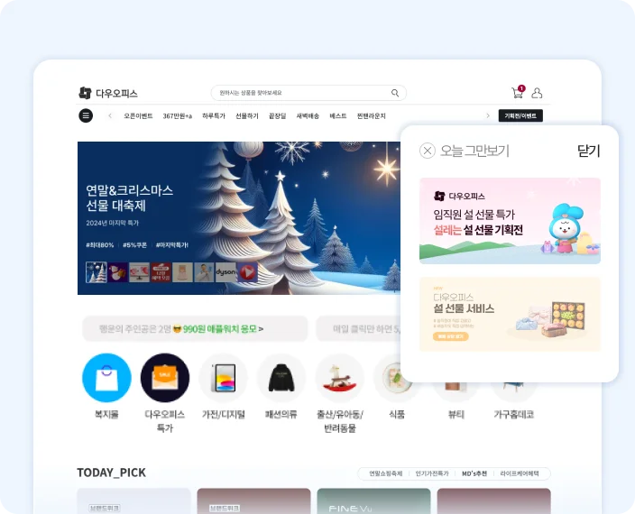 다우오피스 사용자만을 위한 특별 혜택과 한정 특가 상품, 다양한 이벤트를 매일 만나보세요!