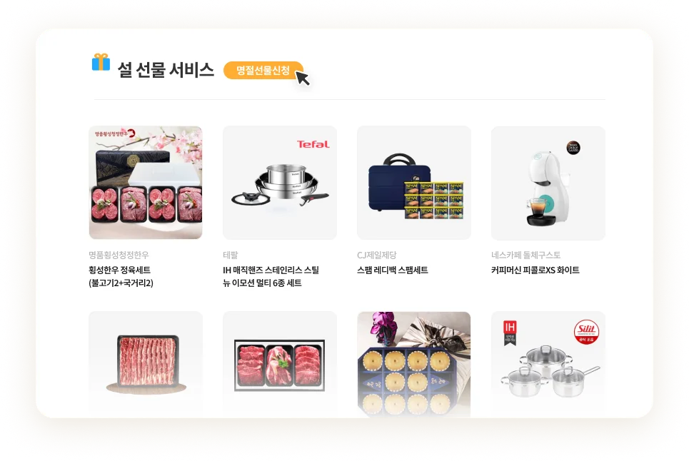 명절, 송년, 신년, 근속 기념 등 다양한 임직원 시즌 선물을 더 스마트하게 준비할 수 있어요.