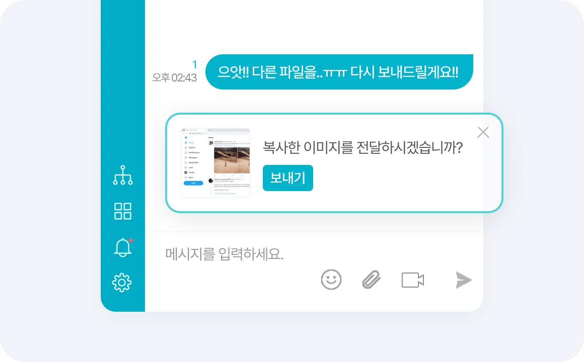 - 붙여넣기 기능으로 클립보드에 있는 이미지(엑셀, 파워포인트 등)를 간편하게 전송할 수 있어요.