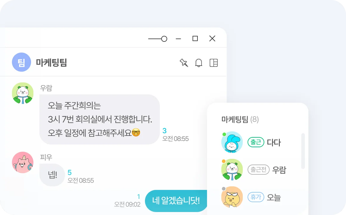 메신저를 활용해 팀원분들과 효과적으로 소통할 수 있을지 걱정되실 거예요.