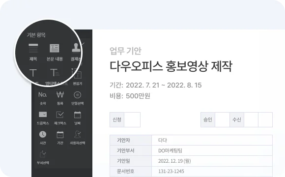 다우오피스 전자결재에서 제공하는 양식을 활용하면, 쉽고 효율적으로 결재 문서를 작성할 수 있어요!