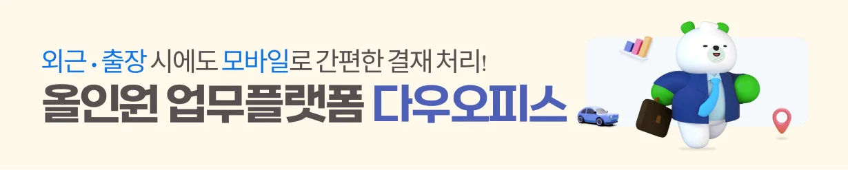 - 다우오피스 모바일 앱을 활용한 전자결재는, 언제 어디서나 그룹웨어에 접속해 결재 문서를 확인하고 결재 할 수 있다는 장점이 있어요! 모바일로 문서를 작성하고, 결재를 상신해 편리하게 업무에 활용해 보세요! 😊