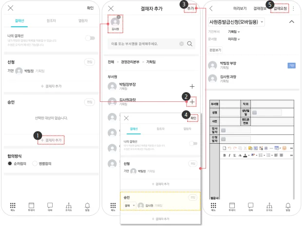 - 결재의 순차/병렬 합의 설정도 가능해요.