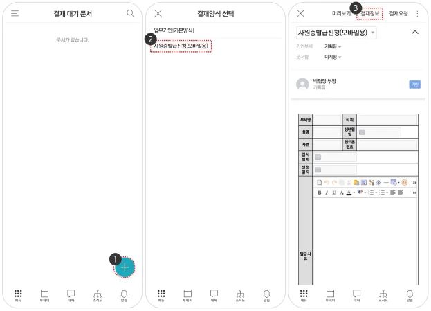 - PC와 동일한 절차로 결재 문서를 상신할 수 있어요.