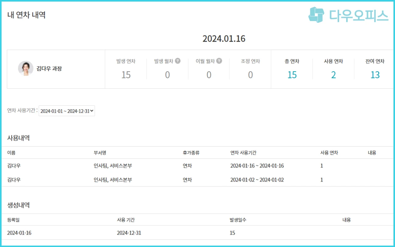 다우오피스 근태관리