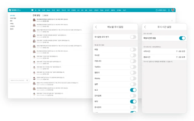 각종 알림 메세지를 다우오피스의 알람 서비스를 통하여 간편하게 전달할 수 있습니다!