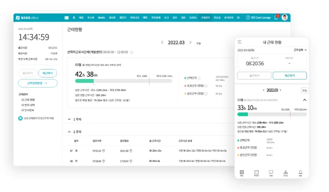 근태관리(주 52시간 기반)로 체계적인 통합관리를 할 수 있습니다.