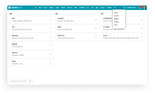 업무시스템의 특정 페이지를 다우오피스의 메뉴로 연동할 수 있습니다!