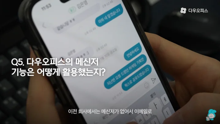 다우오피스의 메신저 기능을 사용하다 보니 훨씬 빠르고 정확하게 소통 할 수 있었습니다.