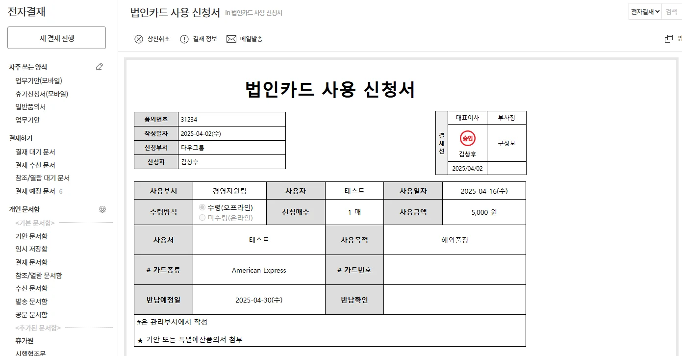 2. 철저하고 체계적인 전자결재: 전자결재로 회사 자금을 정확하고 편리하게 관리 가능!