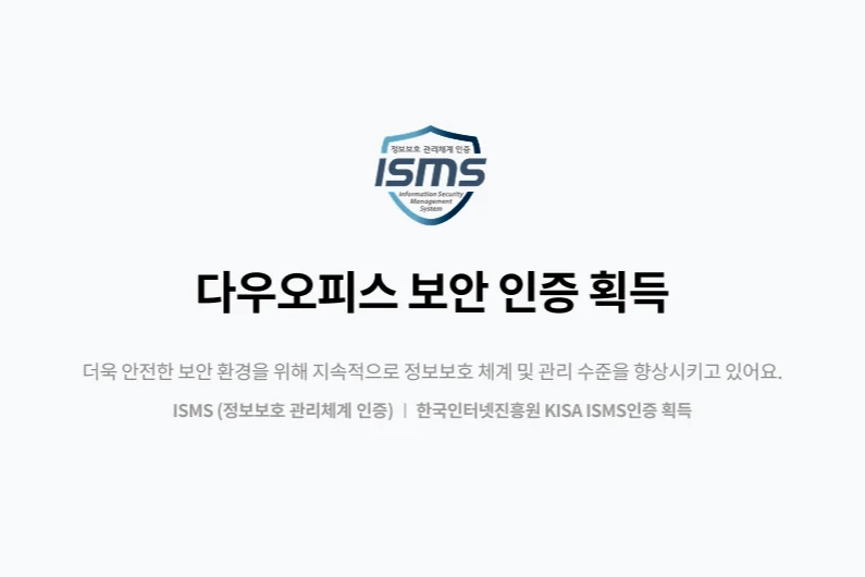다우오피스는 ISMS에서 인증을 받은 검증된 보안성을 갖추고 있어서 안심하고 선택할 수 있었습니다.