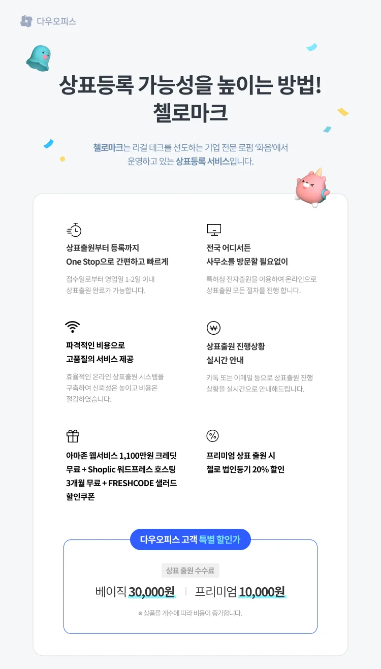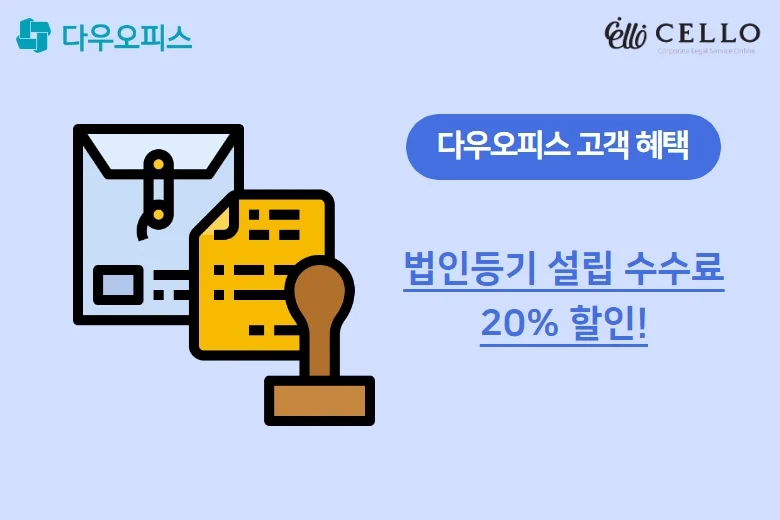 법인등기 설립 수수료 20% 할인! [첼로, 다우오피스 제휴]