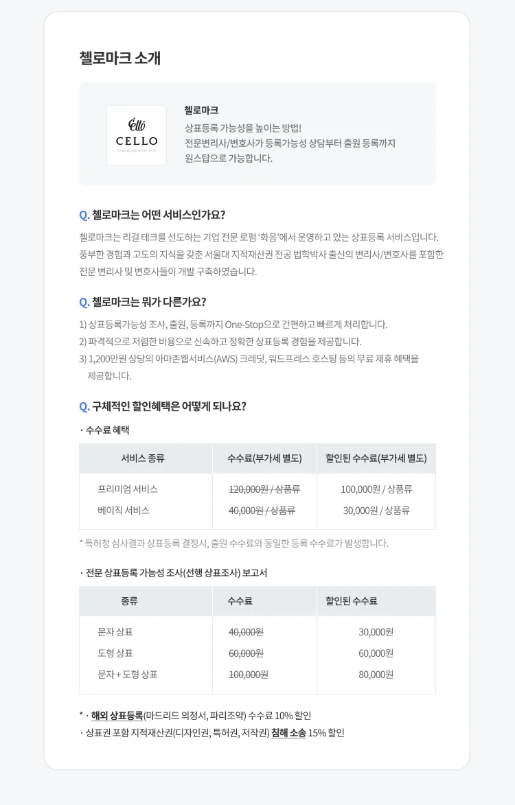 '첼로'대행 수수료를 20% 내외로 할인해드리고 있어요!