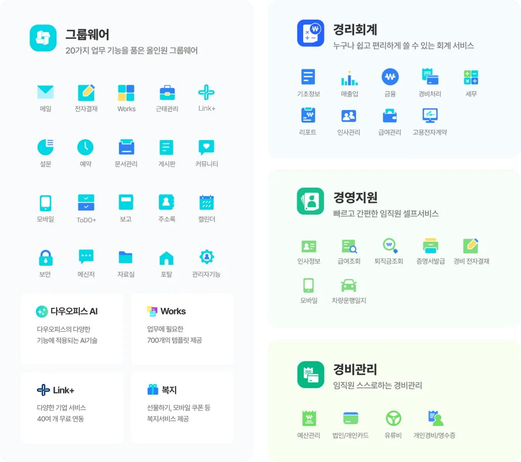다우오피스는 업무 관리를 위한 그룹웨어 기능부터,