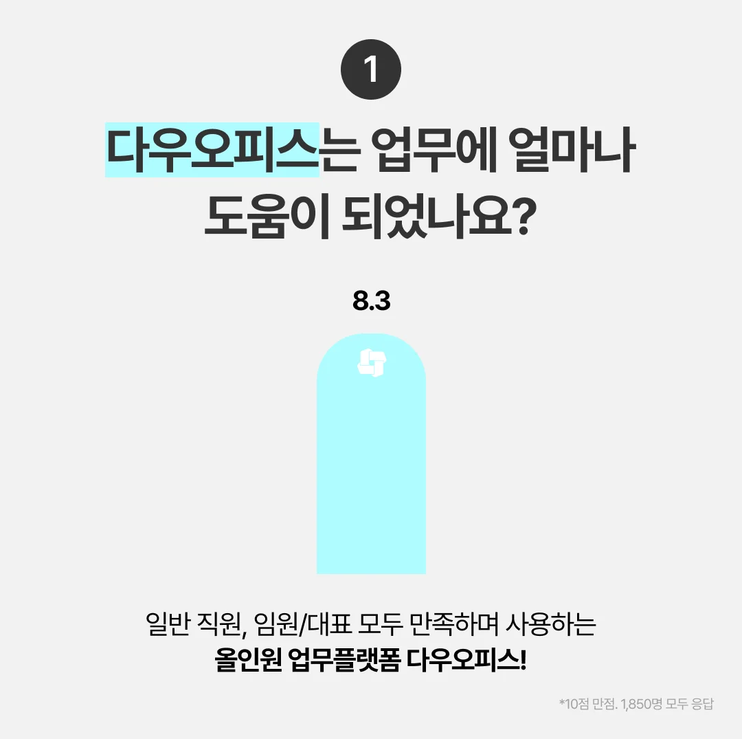 8.3점이라는 높은 만족도를 가지고 다우오피스를 이용하고 계신 것으로 나타났습니다!