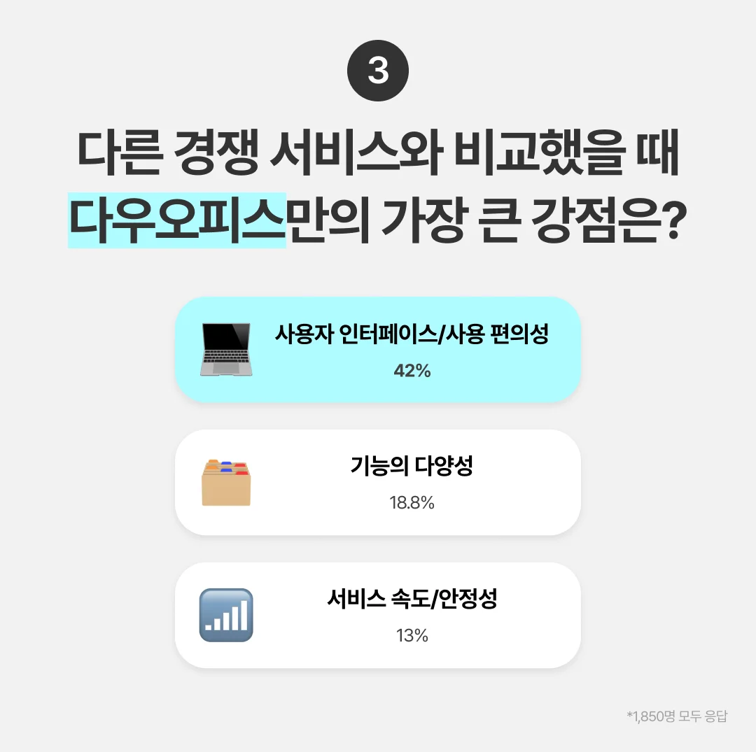 💙 1위: 다우오피스 인터페이스는 사용하기에 편리해요! (42%)