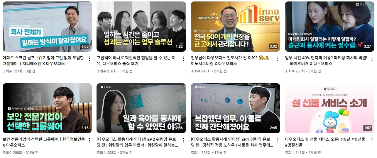 → 📷 다우오피스 유튜브를 방문하시면, 다우오피스 고객사의 인터뷰 영상을 확인하실 수 있어요!