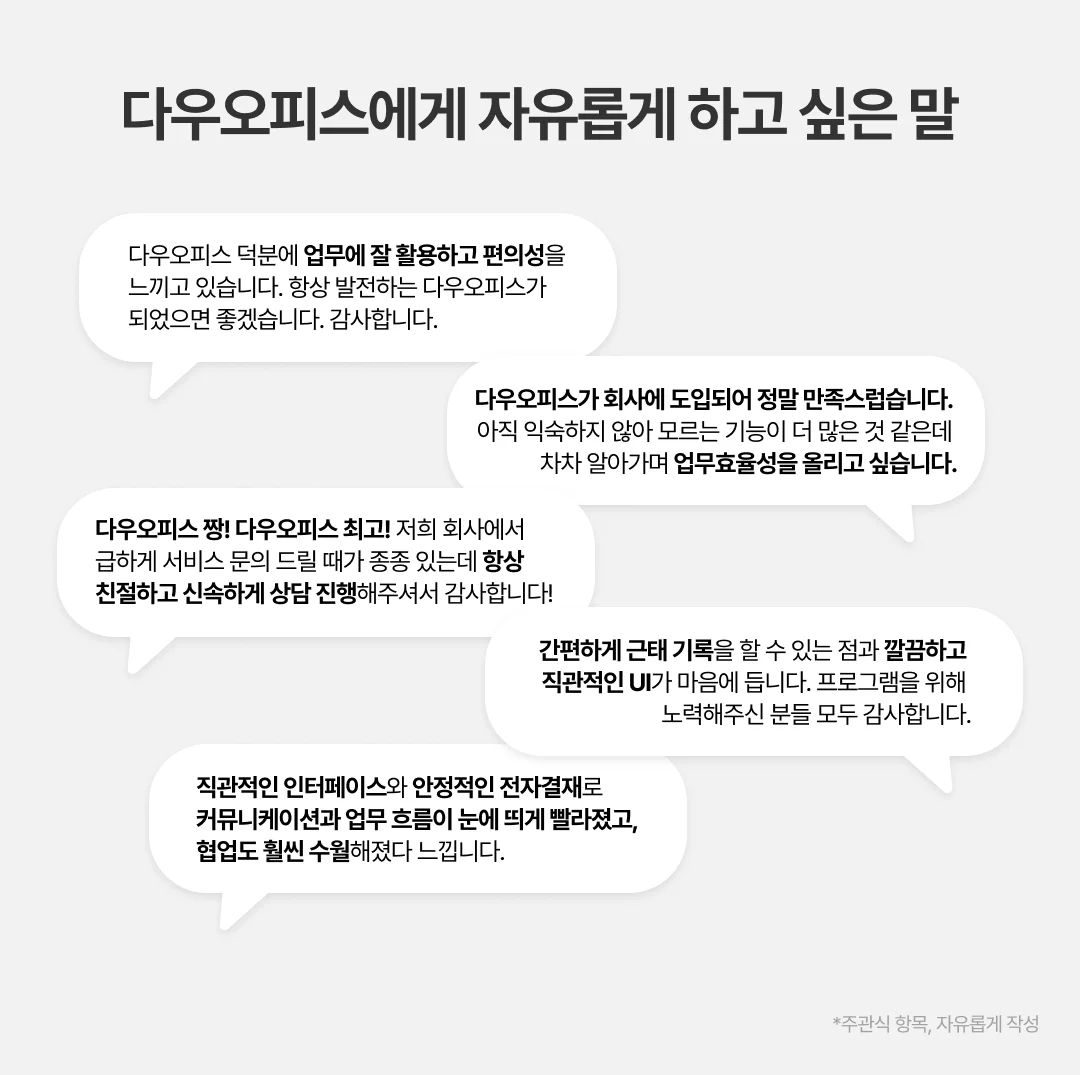 많은 분들께서 다우오피스와 관련하여 칭찬 및 제안을 주셨습니다!