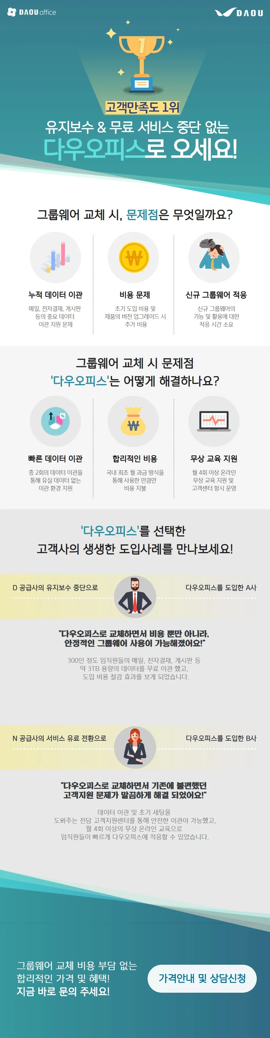 유지보수 비용 부담&서비스 중단 없는 고객만족도 1위 다우오피스로 오시면