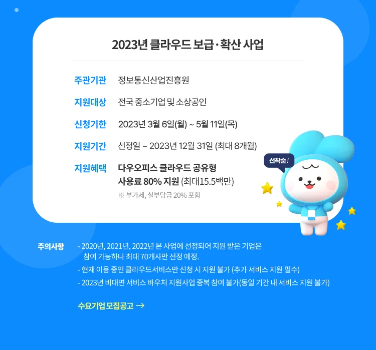 (종료)다우오피스 사용료 최대 80% 지원! 클라우드 보급·확산 사업