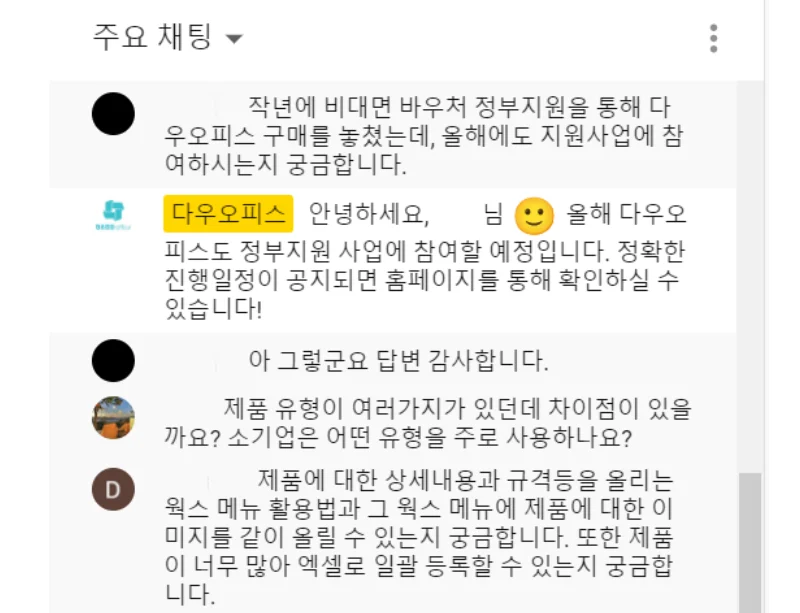 다우오피스 직원분이 사용하는 화면을 통해 각 기능을 설명하는 시간을 가졌습니다.