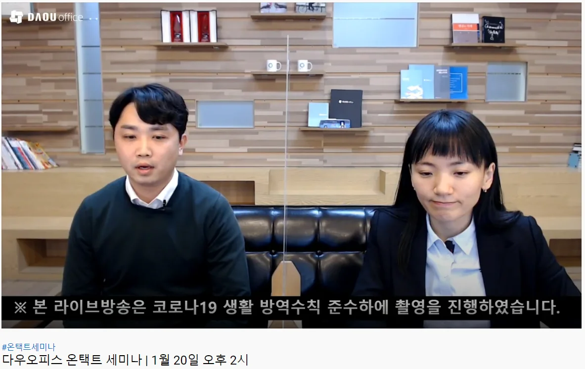 다우오피스 온택트 세미나가 1월 20일(수) 약 30분간 열렸습니다.