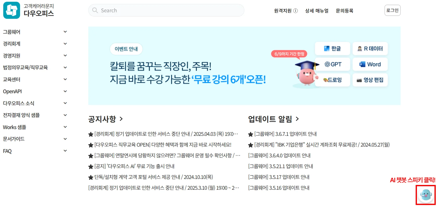 다우오피스 고객케어라운지에서도 검색 & 확인 가능합니다!