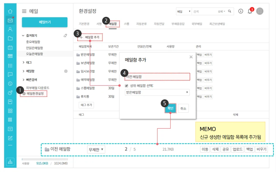4. 새 메일함 이름 입력