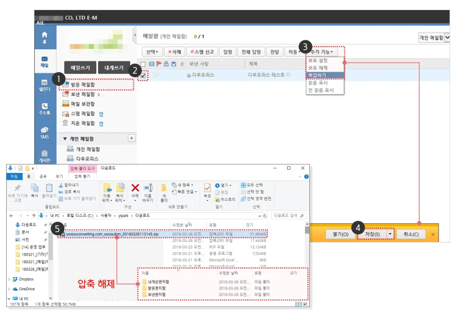 메일나라의 메일 백업 후, 다우오피스로 이관하는 방법!