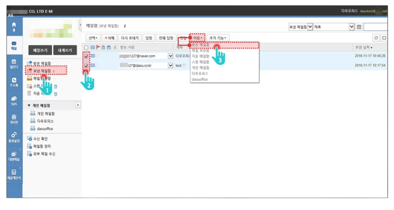2. 다우오피스 메일 업로드