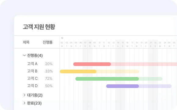 간트차트를 이용해 고객 지원 현황을 한 눈에 확인해요!
