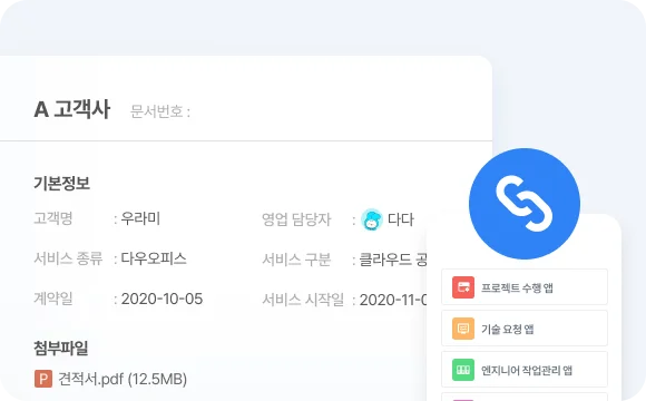고객과의 히스토리가 전부 기록, 연동되어 담당자가 변경되어도 문제없이 진행할 수 있어요.