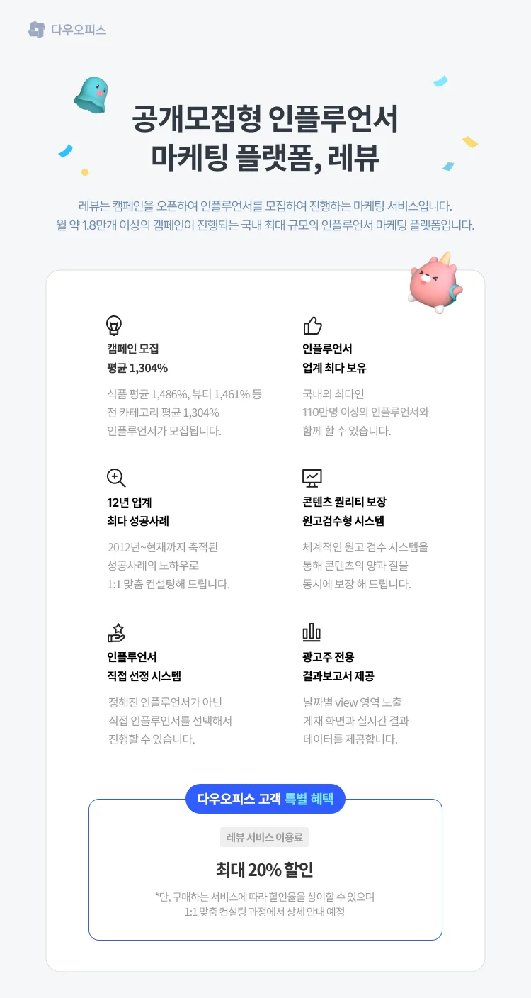 서비스 이용료 최대 20% 할인! [레뷰, 다우오피스 제휴]