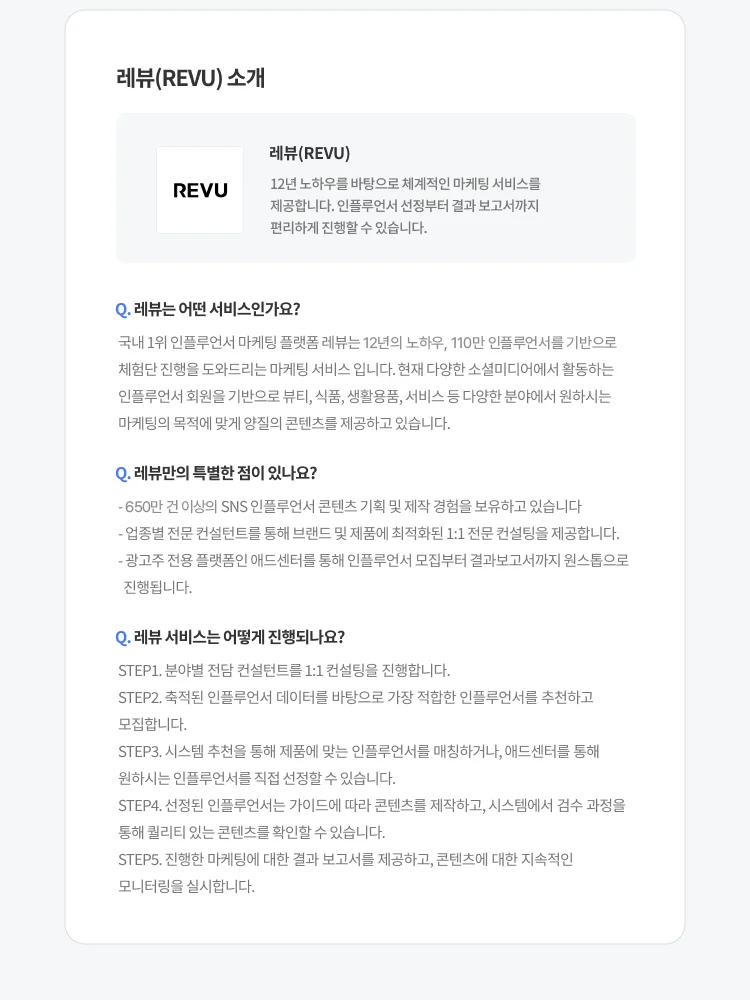 인플루언서 기반의 마케팅 서비스를 제공하는