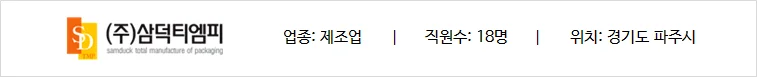 삼덕티엠피는 30년 넘게 UV인쇄, 패키지 제작의 길을 걸어왔습니다. 패키지는 우리의 일상 생활과 함께하고 있으며 생활을 편리하고 풍요롭게 만들어 줍니다. 좋은 패키지 개발과 생산은 산업사회 발전과 더불어 인류의 삶의 질을 향상시킵니다. 급변하는 시장 환경에 대응하며 고객 여러분이 원하는 독창적인 아이디어 개발과 최상의 품질을 실천하는 기업이 되겠습니다. 삼덕티엠피는 패키지 산업의 선두주자로서 더욱 큰 꿈을 향해 달려갑니다. 고객 만족을 최우선으로 하는 국내 최고의 패키지 전문 기업으로 성장할 것을 약속드리며, 변함없는 사랑과 관심을 부탁드립니다.