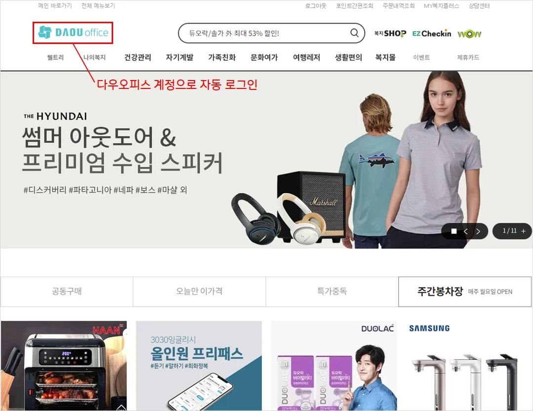 임직원의 복리후생을 위해 복지몰을 제공하려고 계획 중이었습니다. 많은 복지몰이 있었지만 대부분 복지몰은 해당 사이트에서 별도로 회원가입을 해야 했고 이용하기 위해서 새로운 인터넷 창을 생성한 후 접속해야 했기 때문에 직원들이 번거로워서 잘 이용하지 않을 것 같았습니다. 그래서 이왕이면 간편하게 사이트에 접속하고 로그인이 가능하여 직원들이 자주 사용할만한 복지몰을 찾기 위해 노력했습니다.