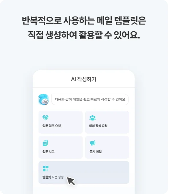 반복적으로 사용하는 메일 템플릿이 있다면, 나만의 맞춤형 템플릿을 직접 생성할 수 있습니다.