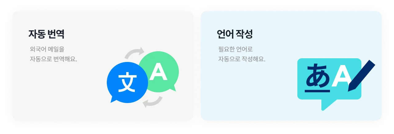 외국어로 온 메일, 일일이 번역하지 마세요!영어, 일본어, 중국어, 베트남어 자동 번역으로 글로벌 협업 시에도 언어의 장벽 없이 원활하게 소통할 수 있어요.