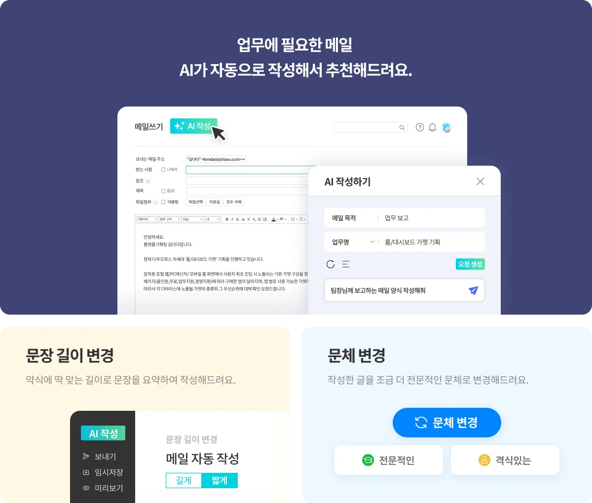 이제는 메일 작성으로 고민하며 소중한 업무 시간을 낭비하지 마세요!