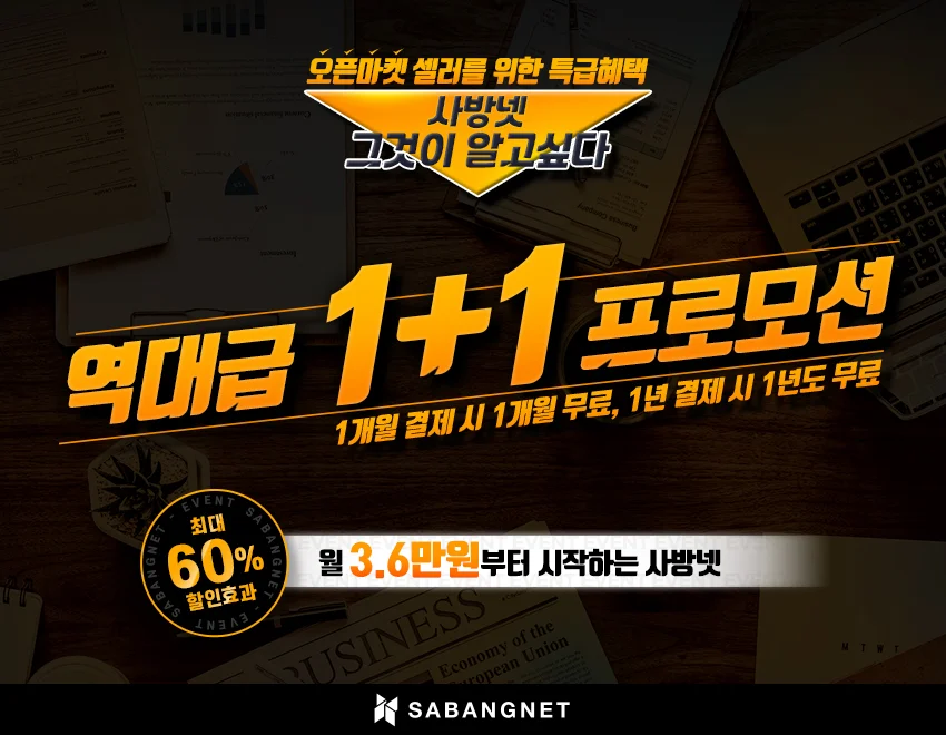 오픈마켓 셀러들 모여라🙋 - 사방넷에서 1+1 프로모션으로 최대 60% 할인 받는 법!