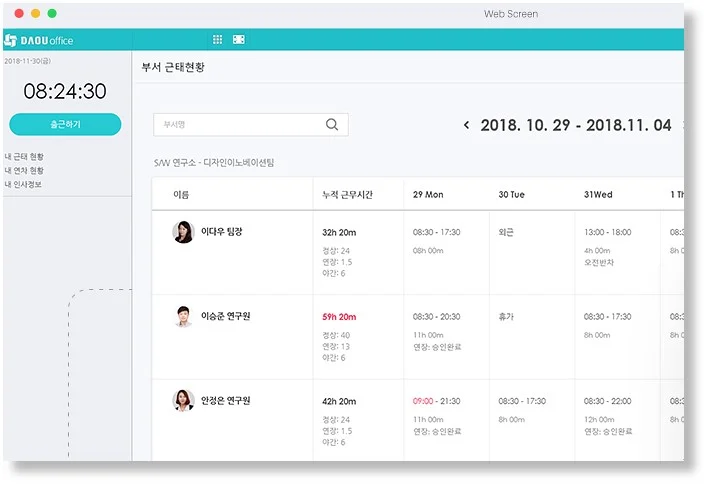 다우오피스는 주52시간 근태관리(유연근무제)를 반영한 근태기능을 제공함으로써
