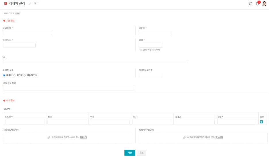거래처 관련 정보를 상세히 작성하여 관리할 수 있어요.