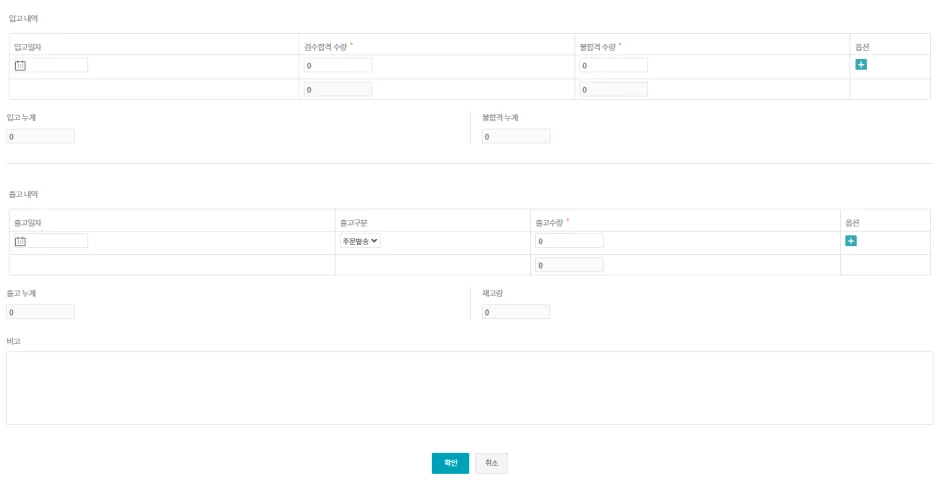 또한, 출고 내역에서 출고 일자와 출고 수량을 기입할 수 있고