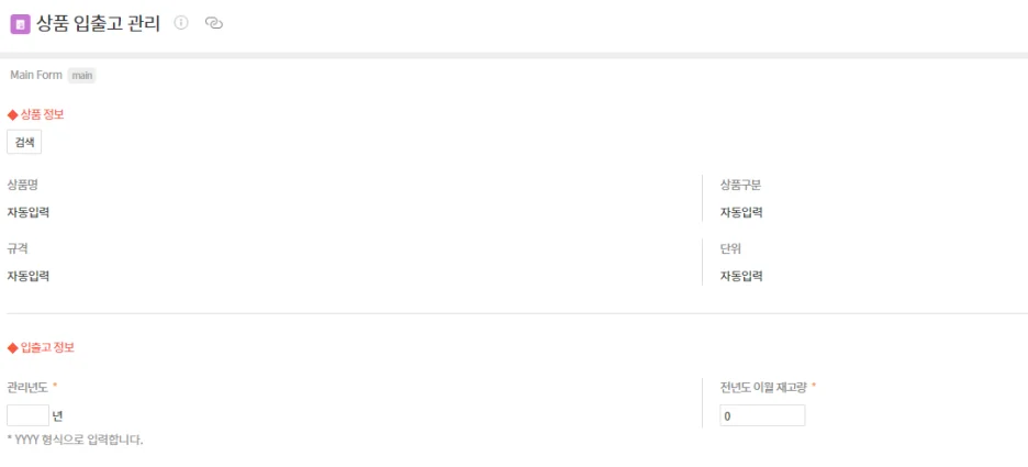 입출고 정보에 관리 연도와 전년도 이월 재고량을 기입할 수 있어요.