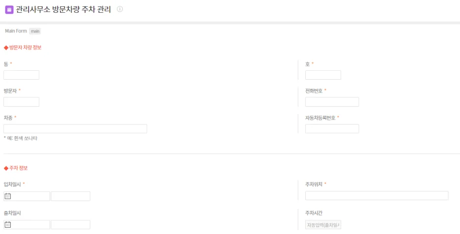 ▪️ 차종, 등록번호 등 방문차량 및 방문자의 기본 자료를 입력하여 정보 등록
