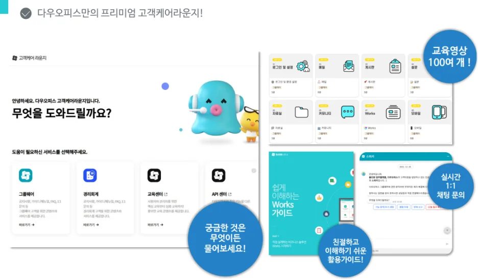 다우오피스는 다른 그룹웨어 서비스보다 더 다양한 고객지원 서비스를 제공하는 것, 확인하셨나요?
