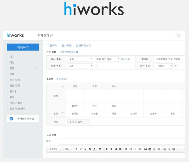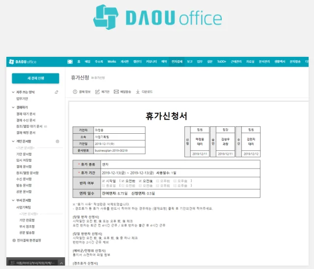 다우오피스, 하이웍스 전자결재 기능 화면